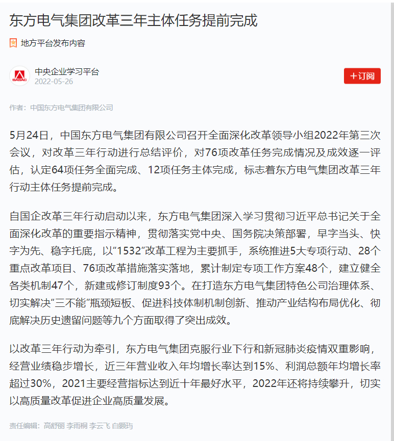 [学习强国]尊龙凯时人生就是搏电气集团改革三年主体任务提前完成