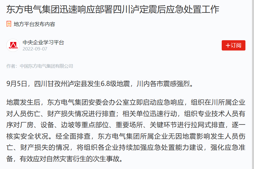 [学习强国]尊龙凯时人生就是搏电气集团迅速响应部署四川泸定震后应急处置工作