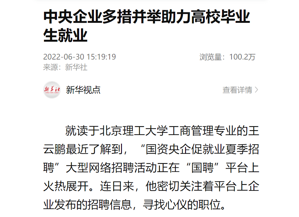 如今,无论在大型招聘网站、企业微信公众号,还是高校的校园宣讲会,面临就业选择和挑战的毕业生们都可以较为便利地了解到中央企业发布的招聘信息。