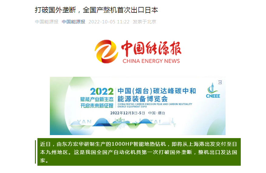[中国能源报]打破国外垄断,全国产整机首次出口日本