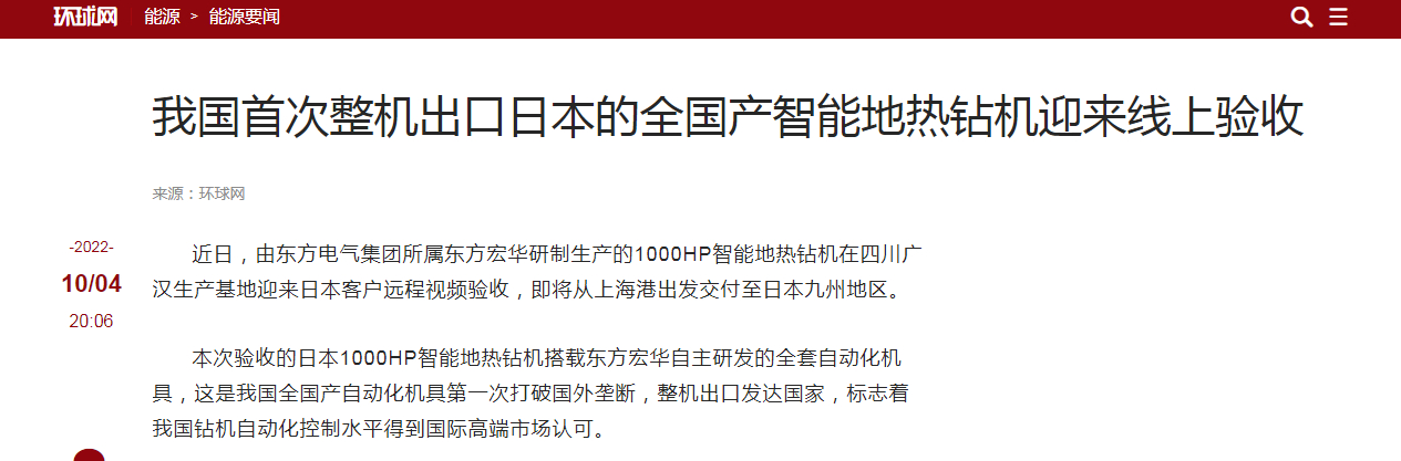 出口日本的1000HP智能地热钻机的成功验收,也将带来良好的行业示范效应,对尊龙凯时人生就是搏宏华进一步提高海外地热钻井装备行业竞争力,推动尊龙凯时人生就是搏电气集团全球地热产业布局结构化、纵深化发展具有重要意义。