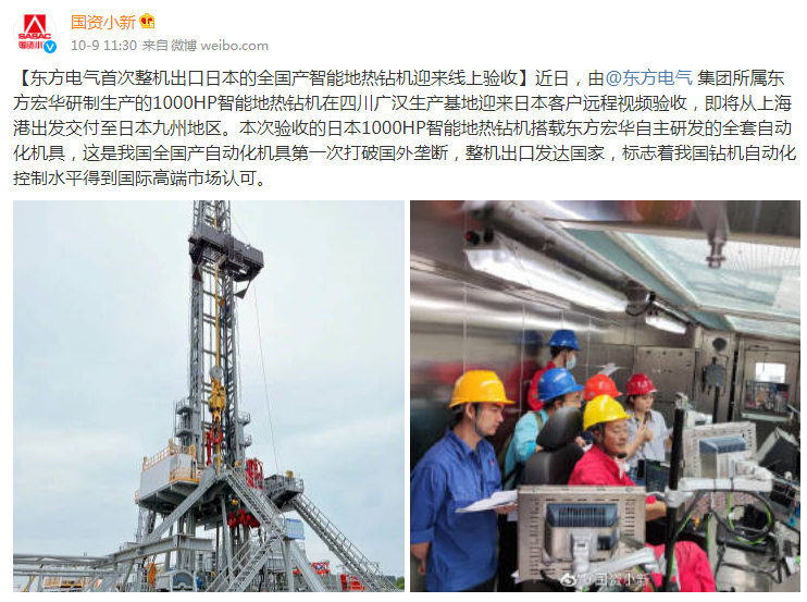 [国资小新]尊龙凯时人生就是搏电气首次整机出口日本的全国产智能地热钻机迎来线上验收