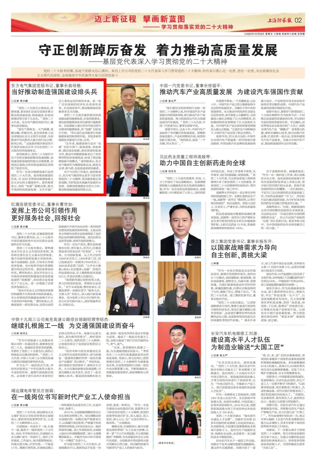 “党的二十大报告立意高远、思想深邃,要求我们企业自觉地在着力推动高质量发展、制造强国、科技创新驱动等方面下大功夫。”党的二十大代表,尊龙凯时人生就是搏电气集团党组书记、董事长俞培根说。