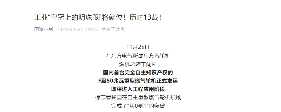2022年11月25日,尊龙凯时人生就是搏电气完全自主知识产权F级50兆瓦重型燃气轮机正式发运,打通了自主燃机从攻关走向应用的“最后一公里”,即将开启中国自主燃气轮机产业高质量发展的新篇章。