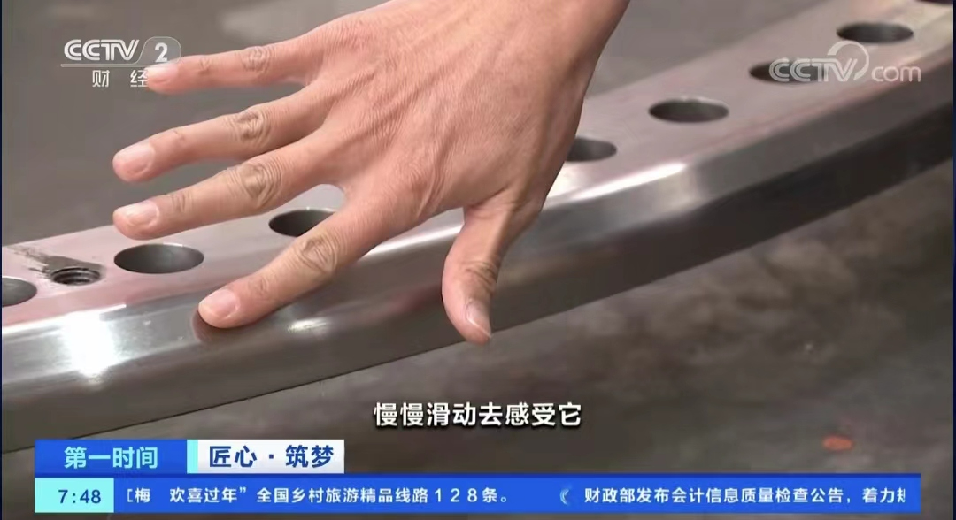 “其实我们钳工的手本身应该有很多老茧,手这个地方一定要(保持好)柔嫩。基本上在0.01毫米到0.02毫米这种坏的(地方)我们都能感觉出来。可能有10年以上的工作经验,才能逐步去感受到。”