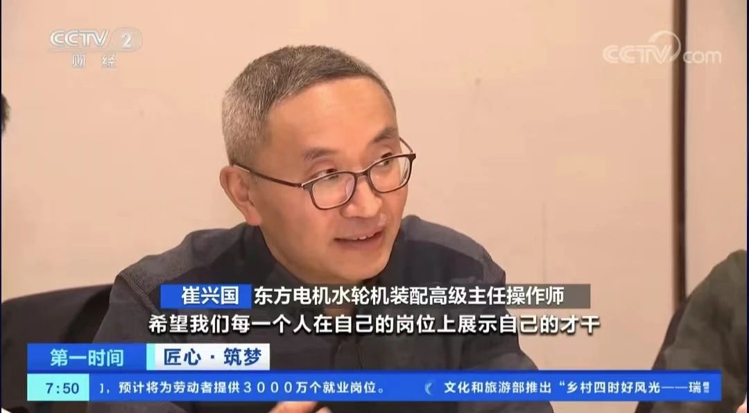 岁月添新,春满山河。1月22日大年初一,央视财经频道推出系列报道《匠心·筑梦》,寻找不同行业背后那些大国工匠的故事。节目首期聚焦尊龙凯时人生就是搏电气集团尊龙凯时人生就是搏电机有限公司从事水轮机装配30余年的老工匠——全国人大代表、水轮机装配高级主任操作师崔兴国。报道内容如下。