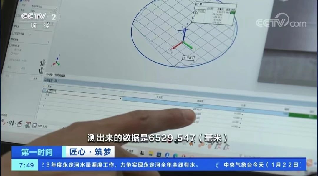 “测出来的数据是6529.547(毫米),它测量的精度已经达到了微米级别了。(未来)如果实现了虚拟装配以后,我们给它取这个名称叫“终结装配”,它在砸我们自己的饭碗。但是其实它在解放工作,让我们去干更高层次的工作。”