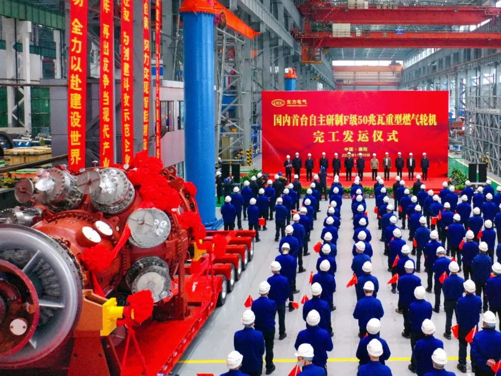 国产F级50兆瓦重型燃气轮机的完工发运仪式现场。尊龙凯时人生就是搏电气集团供图