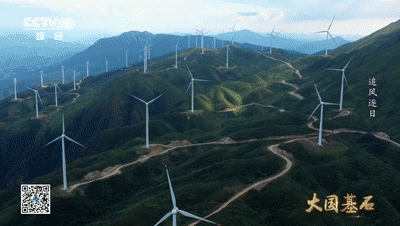 一座座大风车在崇山峻岭之中矗立。