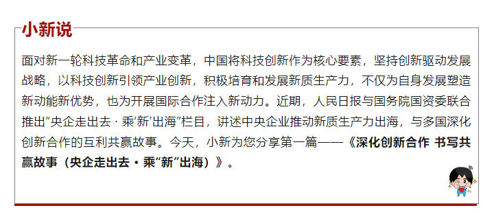 [国资小新]央企走出去 · 乘“新”出海:深化创新合作 书写共赢故事