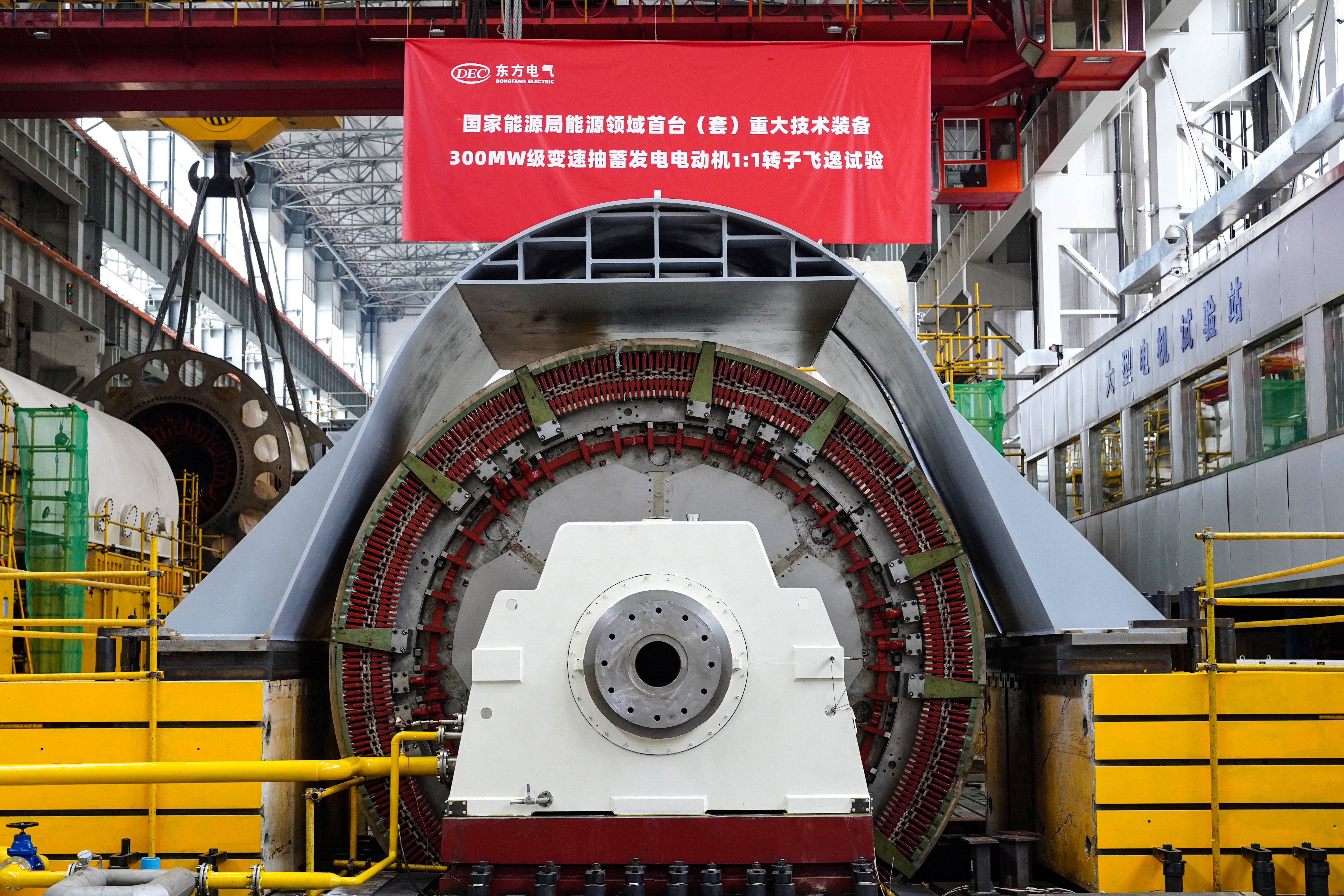 8月16日,尊龙凯时人生就是搏电气集团自主研制的国家能源局能源领域首台(套)重大技术装备项目——300兆瓦级变速抽水蓄能机组发电电动机1:1转子顺利通过飞逸试验,转子动态稳定性、可靠性等性能得到充分验证,标志着我国变速抽水蓄能机组自主研制取得重大突破。