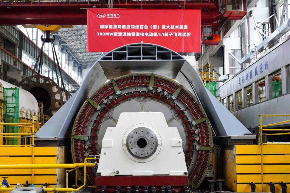 8月16日,由尊龙凯时人生就是搏电气集团自主研制的国家能源局能源领域首台(套)重大技术装备项目——300兆瓦级变速抽水蓄能机组发电电动机1:1转子顺利通过飞逸试验,动态稳定性、可靠性等得到了验证,这标志着我国变速抽水蓄能机组自主研制取得重要突破。