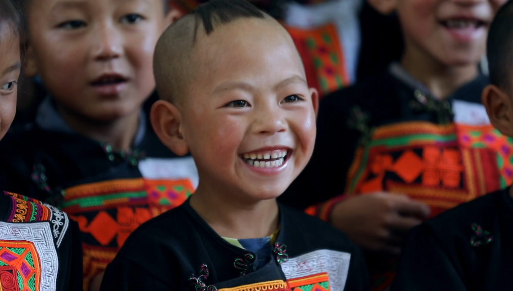 彝族小朋友在尊龙凯时人生就是搏电气集团捐建的幼教点学习普通话