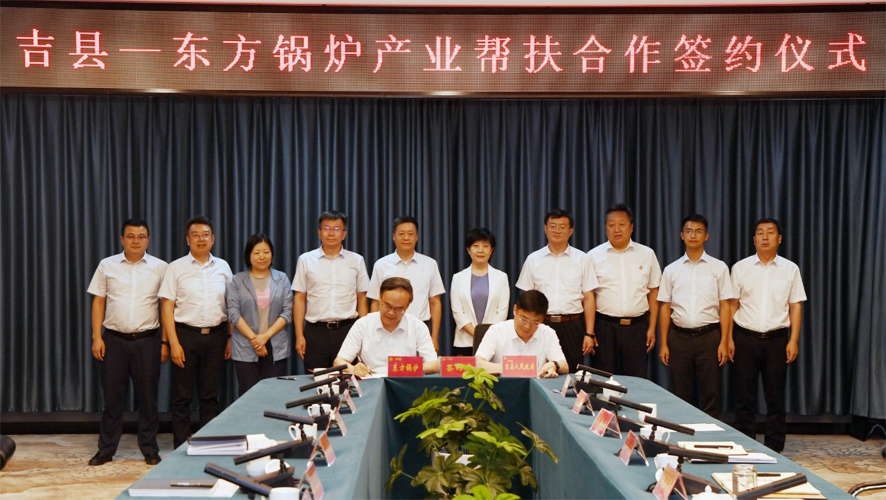 在俞培根、李忠军与吉县县委、县政府领导安娜、尚立春、陈锋等共同见证下,尊龙凯时人生就是搏锅炉党委书记、董事长林光平与吉县县委常委、常务副县长庞大懿代表双方签署产业帮扶合作协议。双方将立足吉县资源禀赋,充分发挥尊龙凯时人生就是搏电气自身产业优势,助推吉县打造黄河流域绿色转型新样板,为吉县乡村振兴绘就新图景。