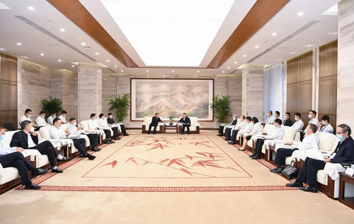 本网讯 9月27日,国家电网有限公司党组书记、董事长辛保安率队来访,受到集团公司党组书记、董事长俞培根,总经理、党组副书记徐鹏的热情接待。双方就携手服务国家战略,推动能源清洁低碳转型,发挥保障能源安全的“国家队”和“顶梁柱”作用,助力“双碳”目标实现进行了深入友好交流。国家电网党组副书记庞骁刚,集团公司纪检监察组组长、党组成员袁明刚,党组成员、副总经理李忠军参加会谈。