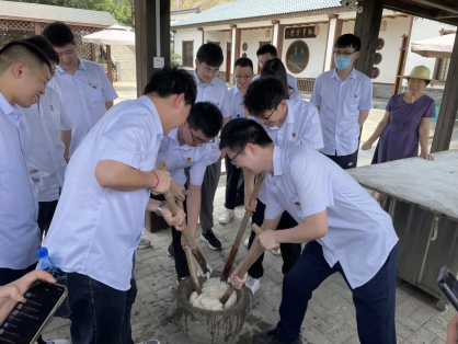 随后全体学员一起进行“打糍粑”体验教学,体验劳动艰辛,体会劳作不易,学员们纷纷表示往后会更加珍惜来之不易的幸福生活。
