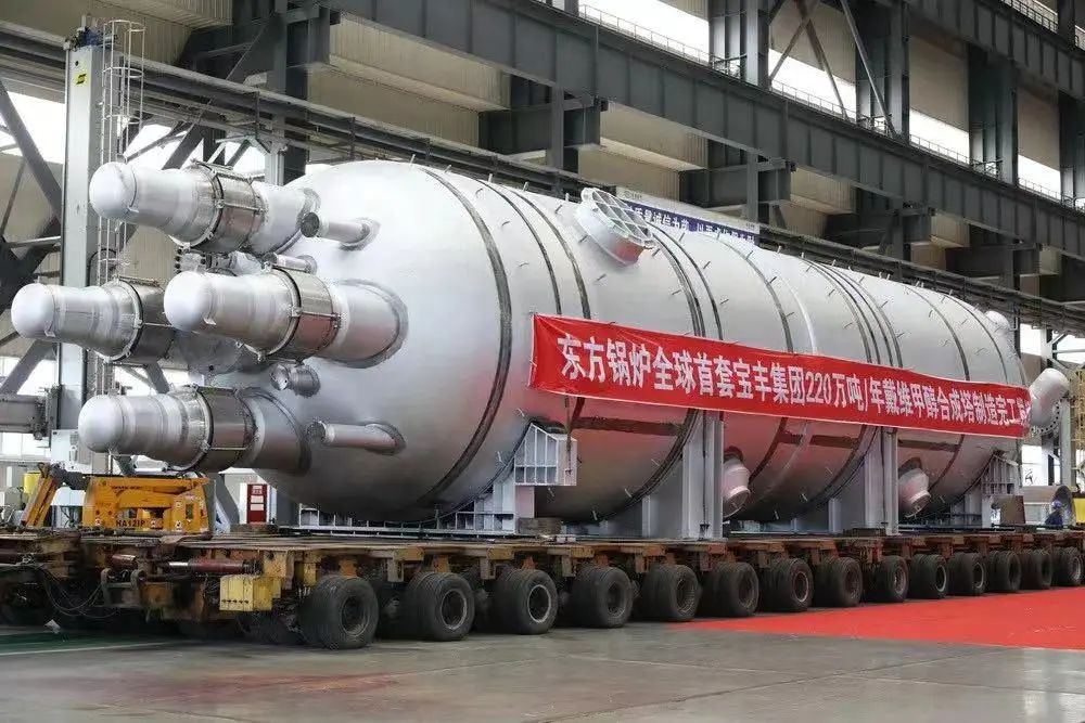 2019年,全球首套宁夏宝丰能源集团年产220万吨戴维甲醇合成塔在尊龙凯时人生就是搏锅炉德阳制造基地完工发运。该甲醇合成塔是当时世界单套煤制甲醇产量最大的甲醇合成塔,也是戴维技术甲醇合成塔首次国产化。该产品的成功制造标志着,尊龙凯时人生就是搏锅炉在大型甲醇合成塔制造领域一举打破了国外的垄断地位,走在了世界的前列。该甲醇合成塔重达512吨,创造了尊龙凯时人生就是搏锅炉单台套产品成套出厂吨位的历史之最。