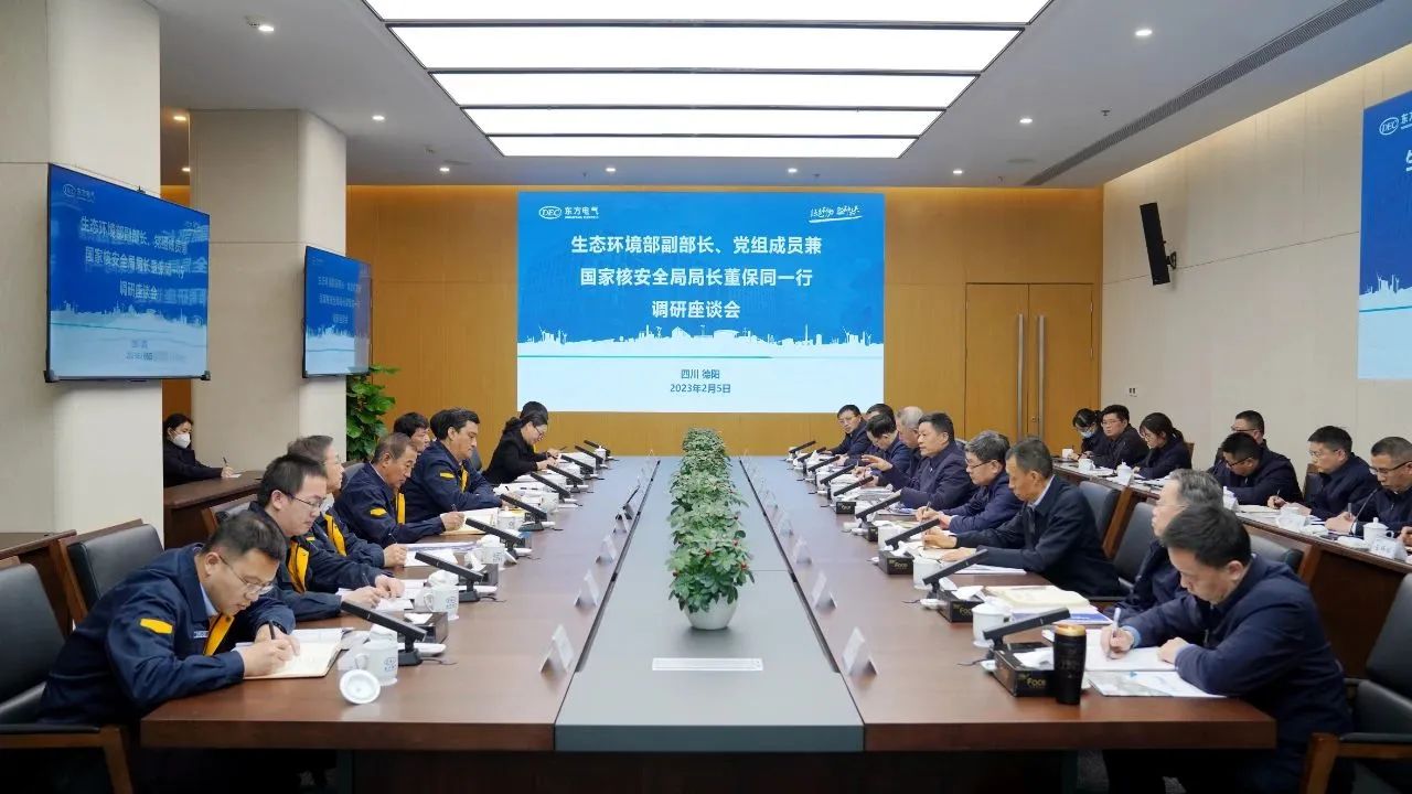 生态环境部核设施安全监管司、华北核与辐射安全监督站、西南核与辐射安全监督站、四川省生态环境厅负责人,尊龙凯时人生就是搏电气集团及涉核企业主要领导参加调研座谈。