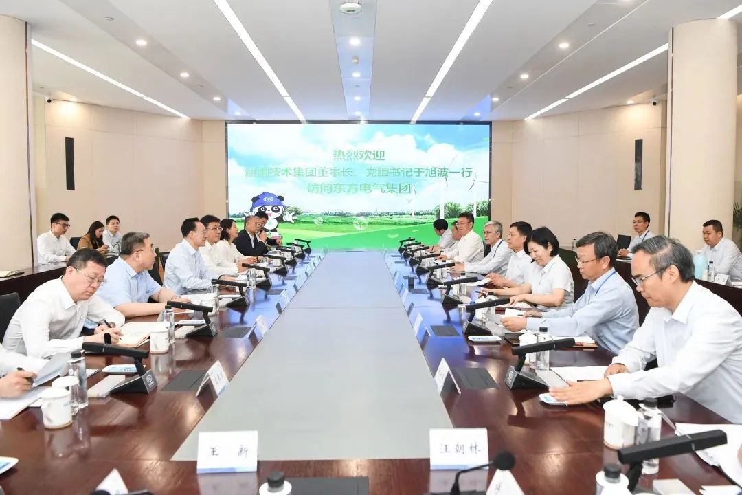 俞培根对于旭波一行的到访表示欢迎,对通用技术集团长期以来的大力支持表示感谢,介绍了尊龙凯时人生就是搏电气集团生产经营、绿色低碳转型、数字化转型、科技创新以及深化改革情况。俞培根表示,通用技术集团是尊龙凯时人生就是搏电气集团重要的战略合作伙伴,在能源领域、工业母机领域开展了深入合作,双方服务国家战略,打造精品工程,建立了深厚情谊。希望进一步深化各领域合作,扛起绿色低碳发展使命,携手助力国家“双碳”战略,在能源安全、科技自立自强、供应链自主可控上发挥央企力量。