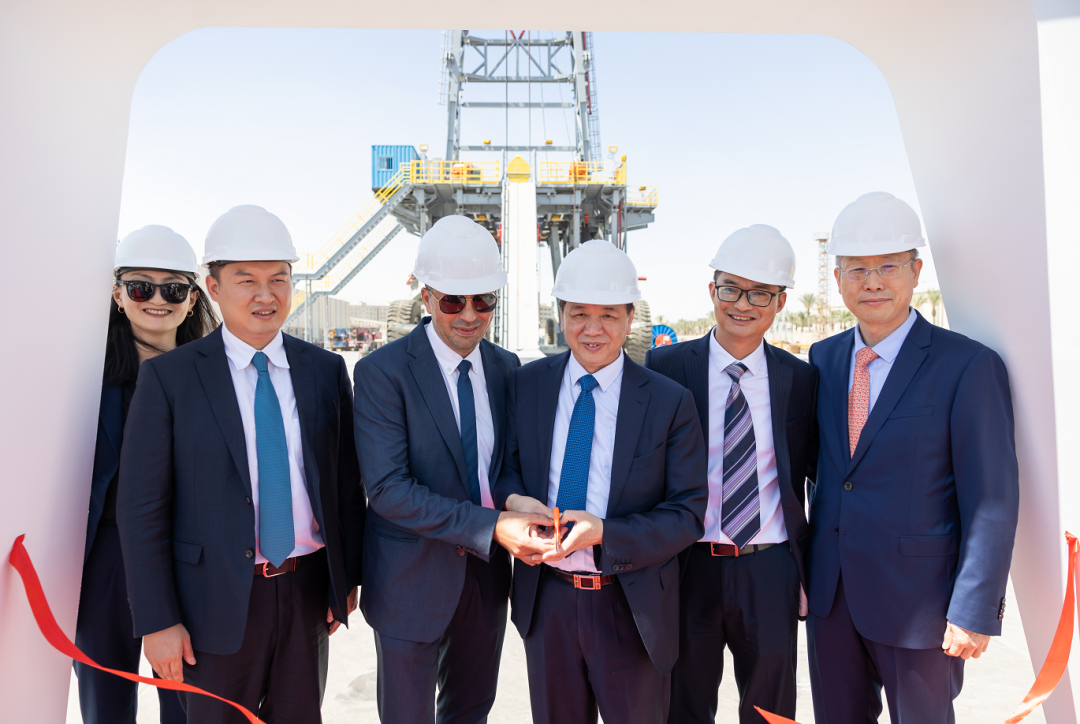仪式上,参会领导共同为第一套总装下线的钻机剪彩,参观了宏华埃及生产工厂和制造中的钻机,并慰问了在埃中方员工。