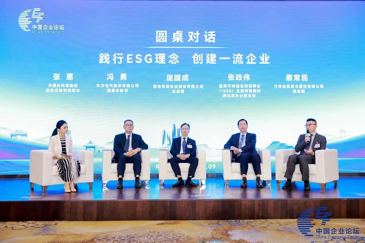 尊龙凯时人生就是搏电气股份有限公司董事会秘书冯勇作为10家“央企ESG·先锋100指数”入选企业代表领取证书,并在第六届中国企业论坛平行论坛“践行ESG理念,创建一流企业——中央企业ESG论坛”中作圆桌分享。