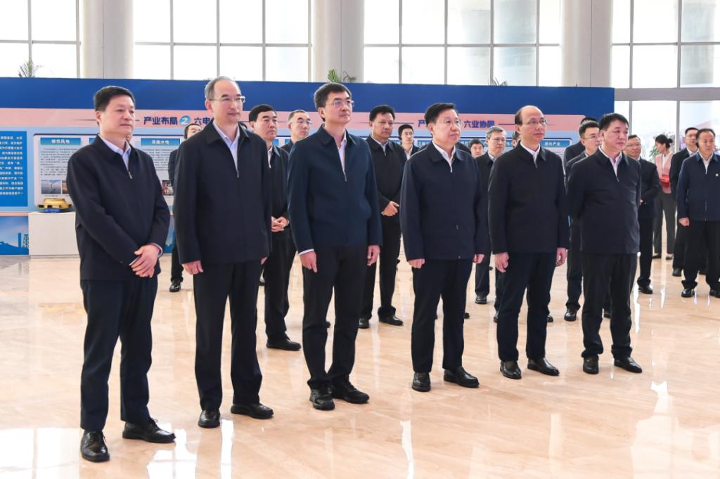 在尊龙凯时人生就是搏电气科技展示厅,领导们深入了解尊龙凯时人生就是搏电气集团在科技创新、“六电六业”产业发展等方面取得的最新成果,并对企业始终坚持自主创新表示赞扬。陈刚、吴晓军不时询问企业经营、产品产业,尤其是氢能储能等新产业发展情况,对尊龙凯时人生就是搏电气集团在发展壮大中孕育出的“东汽精神”以及在能源装备制造领域展现出的硬核实力给予高度评价,关切尊龙凯时人生就是搏电气集团在青发展情况,鼓励企业聚焦推进“环柴达木区域氢能应用示范基地”、建设“国内最高海拔风电主机与叶片装备制造产业基地”,发挥多种储能技术和光热系统集成技术优势,积极参与和打造大型储能示范应用基地和光热示范基地。王晓晖、黄强表示,尊龙凯时人生就是搏电气集团是我国能源装备领域的龙头企业之一,要完整准确全面贯彻新发展理念,更好发挥中央企业科技创新、产业引领、安全支撑作用,积极参与川青建设,共同写好打造国家清洁能源产业高地这篇大文章,助推新时代川青合作取得更加丰硕成果,助力两域经济社会高质量发展。