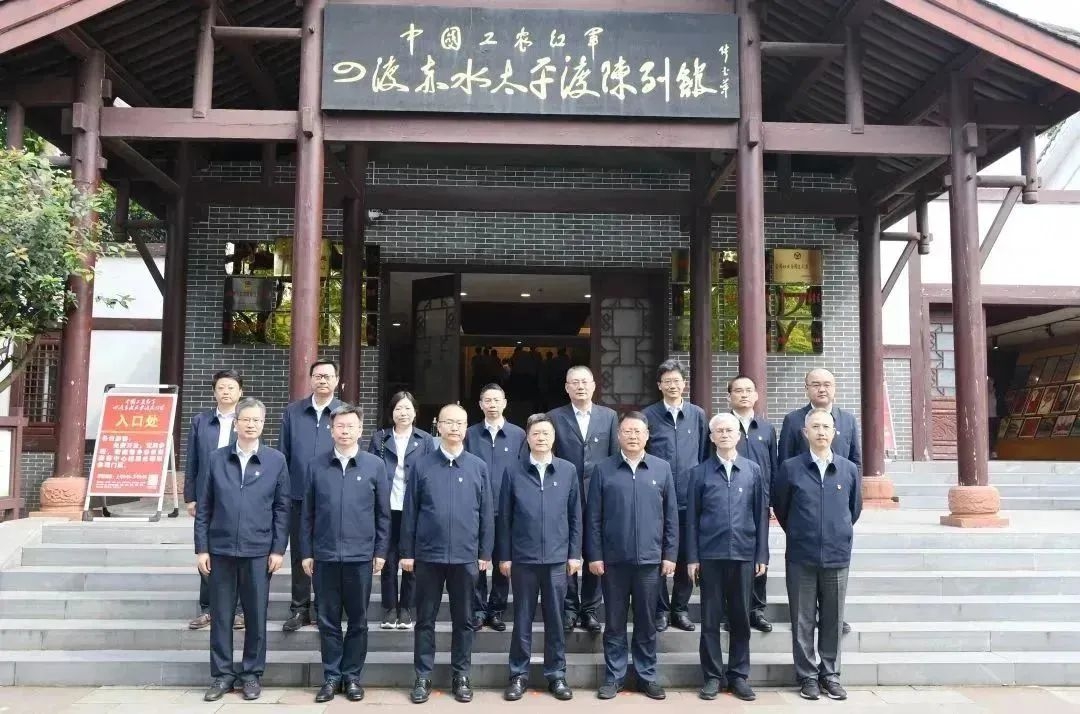 追寻红色足迹,俞培根一行来到中国工农红军四渡赤水太平渡陈列馆、毛泽东四渡赤水纪念馆等地,通过现场教学接受了一次全面而深刻的红色洗礼。在太平渡口纪念碑前,面对党旗,俞培根带领在场党员领导同志一起重温入党誓词。在俞培根领誓下,铿锵有力的宣誓声响彻赤水河畔,让现场所有人都深受感染,不断叩问初心、守护初心,不断坚守使命、担当使命,始终做到初心如磐、使命在肩。