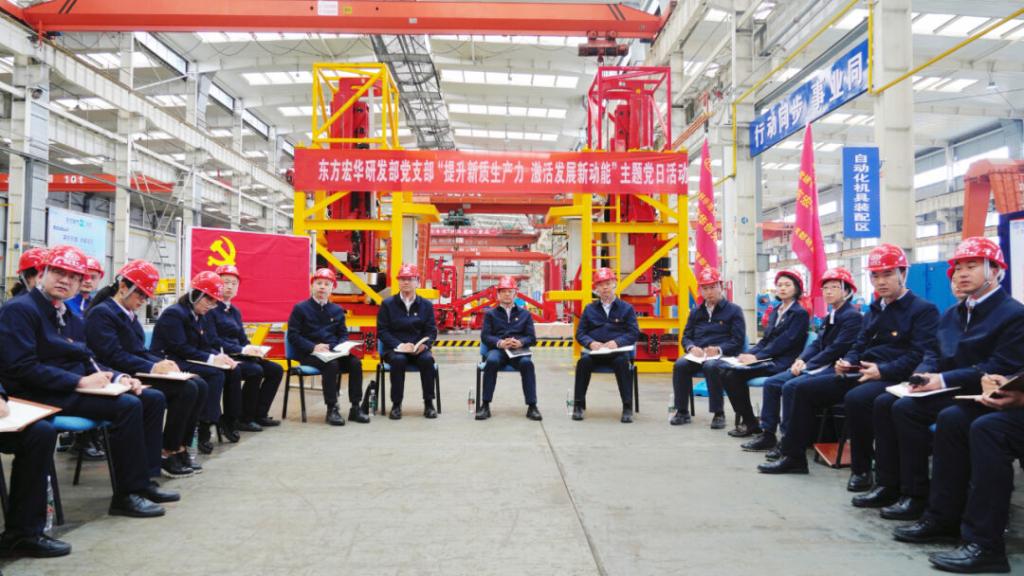 活动开始前,俞培根深入车间开展现场调研,详细了解直驱顶驱、五缸泵、“一键联动”自动化机具等新产品研制情况,倾听研发与生产部门党员的互动讲解,并看望慰问一线干部职工。