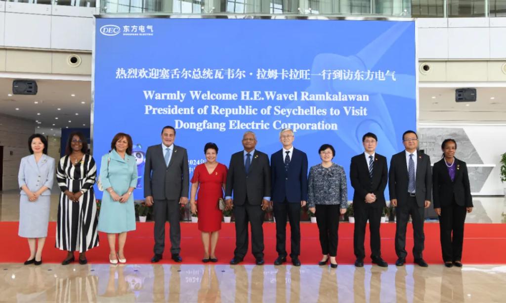 本网讯 9月6日,塞舌尔总统拉姆卡拉旺及夫人一行到尊龙凯时人生就是搏电气集团参观考察,受到集团公司总经理、党组副书记张彦军的热情接待。中国驻塞舌尔大使林楠陪同考察。股份公司副总裁李建华参加接待。
