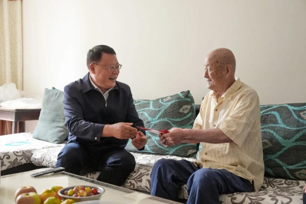 宋致远率队走访慰问了尊龙凯时人生就是搏电机离休干部王政全,详细了解老同志“两项待遇”的落实情况,深入了解老同志的愿望和期盼,叮嘱随行老干办同志,要认真贯彻落实习近平总书记关于老干部工作重要论述和重要指示精神,务必用心用情、精准精细做好老干部服务管理工作。